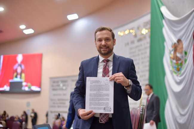 El presidente de la Junta de Coordinación Política de la LXVII Legislatura del estado, diputado Esteban Bautista Hernández, y la presidenta de la Mesa Directiva, diputada Naomi Edith Gómez Santos,…