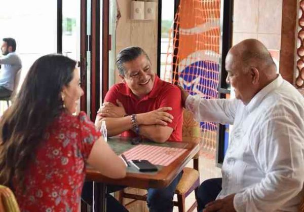 El secretario de Gobierno, Eric Cisneros Burgos, tuvo un feliz encuentro con el todavía dirigente estatal del PRI, Marlon Ramírez Marín, y la secretaria del partido, Arianna Ángeles Aguirre, donde Marlon resaltó e sus redes sociales que fue “una coincidencia afortunada” el poder platicar con Cisneros Burgos.