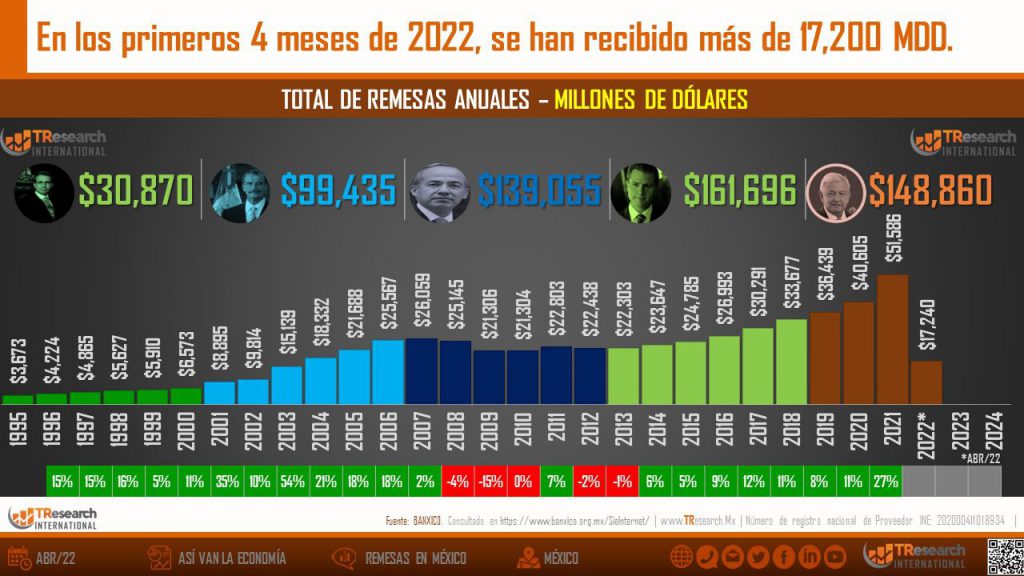 En los primeros 4 meses de 2022, se han recibido más de 17,200 millones de dólares.