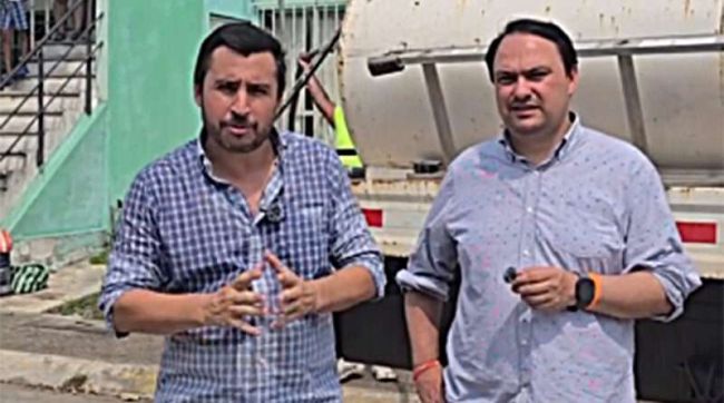 Carbonell y Luciano, cada vez que “hacen el favor” de llevar agua a los damnificados señalan que la donación es en nombre de su coordinador nacional Jorge Álvarez Máynez.