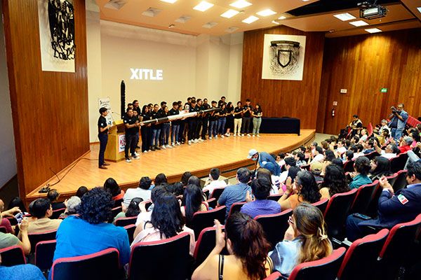 En la presentación, realizada en el auditorio Javier Barros Sierra de la Facultad de Ingeniería (FI), los universitarios exhibieron su proyecto, además de sus cohetes anteriores (uno pequeño sin nombre y otro llamado “Insurgente”), y concluyeron con la presentación colectiva de “Xitle”.