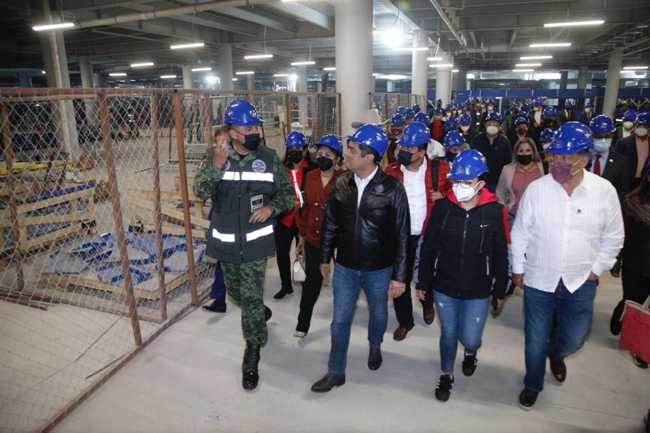 Durante el recorrido, el general de brigada, Gustavo Ricardo Vallejo Suárez, explicó que el aeropuerto tiene un avance físico de 73 por ciento y ha generado más de 122 mil empleos directos, por lo que informó que será posible entregar la obra el 21 de marzo del próximo año.