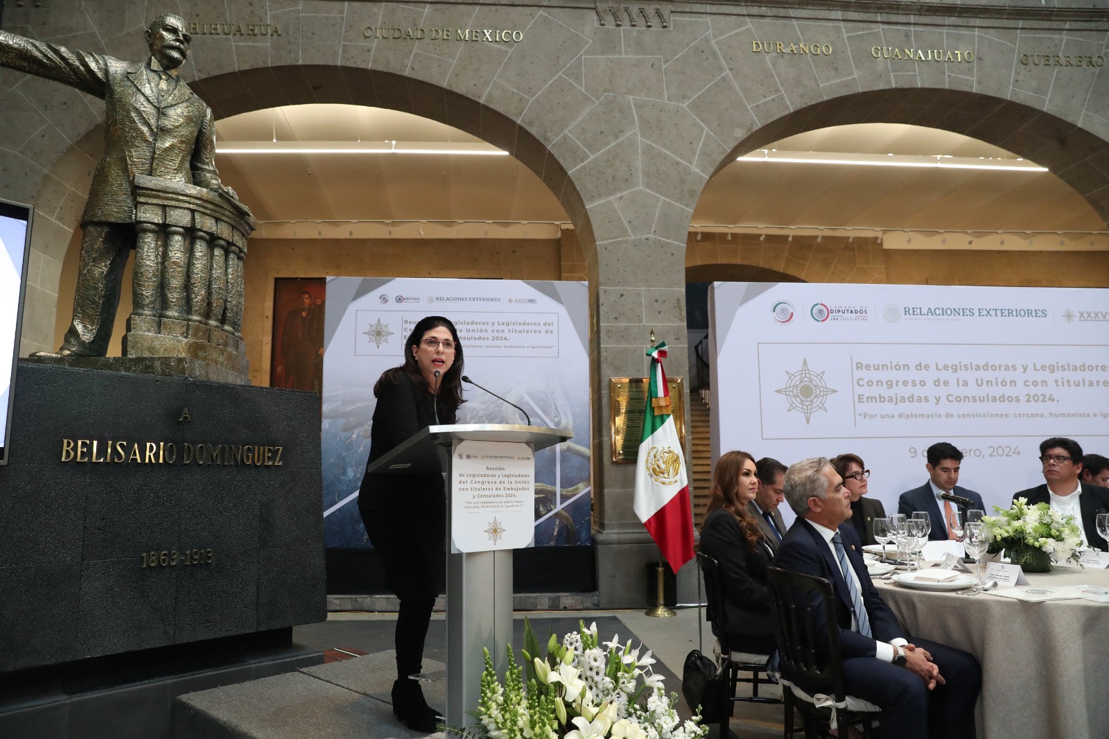 Al participar en la reunión de embajadores y cónsules con legisladoras y legisladores del Congreso de la Unión, en el patio de la antigua sede del Senado, en la Casona de Xicoténcatl, hizo votos para que en la red diplomática de México cada vez haya más mujeres que tengan acceso a altos niveles jerárquicos, así como a la toma de decisiones.