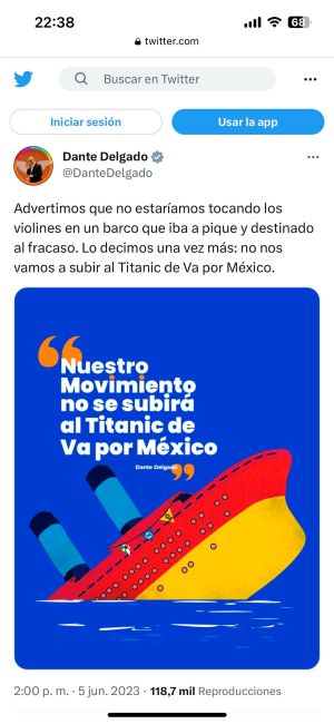 “Advertimos que no estaríamos tocando los violines en un barco que iba a pique y destinado al fracaso. Lo decimos una vez más: no nos vamos a subir al Titanic de Va por México”, dijo.