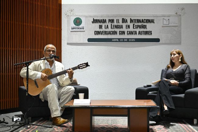 En el marco de la Jornada por el Día Internacional de la Lengua en Español, el Espacio Cultural San Lázaro, en colaboración con el Instituto Cervantes, organizó el encuentro “Conversación con cantautores, la riqueza del español a través de la música”.