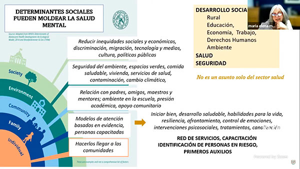 Las determinantes de la salud mental, enfatizó, no son un asunto que se atienda únicamente por el sector salud, se debe trabajar con otros rubros como desarrollo social, educación, trabajo y vivienda, además de canalizar presupuesto suficiente.