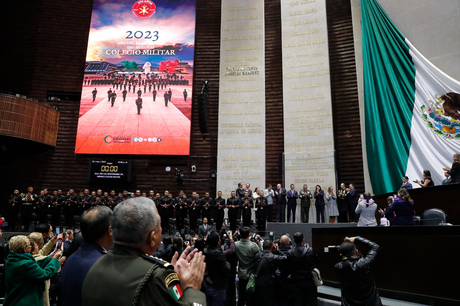 En sesión solemne en modalidad presencial, la Cámara de Diputados inscribió con letras de oro en el Muro de Honor del Salón de Sesiones la leyenda “2023, Año del Bicentenario del Heroico Colegio Militar”, como un reconocimiento a una de las instituciones de mayor trascendencia del Estado mexicano.