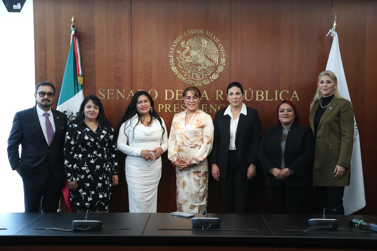 Ello, al reunirse con la presidenta de la Cámara de Senadores, Ana Lilia Rivera Rivera (Morena) y presidentes de congresos estatales, en el marco de la develación de la leyenda “2024, Año del Bicentenario de la Instauración del Senado de la República y del Sesquicentenario de su Restauración en México”, en el Muro de Honor del Senado.