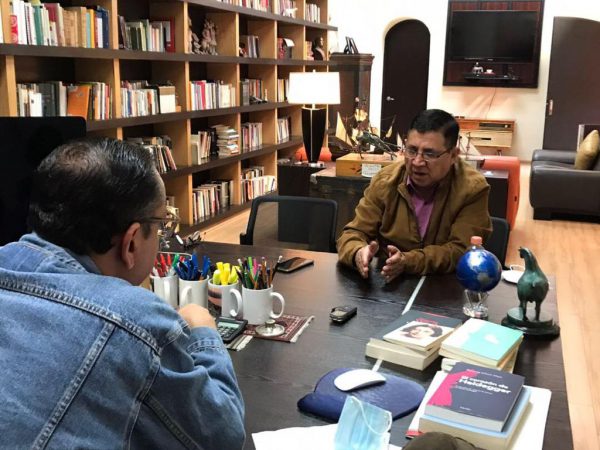 Instalado en el interior de su refugio cultural, intelectual y centro de trabajo, ubicado en el corazón del aún pacífico Coyoacán, al sur de la Ciudad de México, aceptó conversar con este reportero por espacio de dos horas, haciéndose acompañado por su inseparable y leal colaboradora Alicia Cárdenas, quien permanecía atenta al desarrollo de la misma.