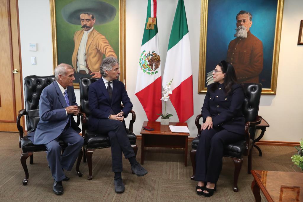 Acompañado del Embajador de Italia en México, Excmo. Sr. Luigi De Chiara, del Consejero Político y Jefe Adjunto de Misión de la Embajada de Italia en la Ciudad de México, Sr. Tommaso Coniglio, así como del embajador de México en aquel país, Sr. Carlos Eugenio García de Alba Zepeda, el senador Verducci coincidió con la diputada Guerra en que la diplomacia parlamentaria es prioritaria para fortalecer el multilateralismo y la relación bilateral.