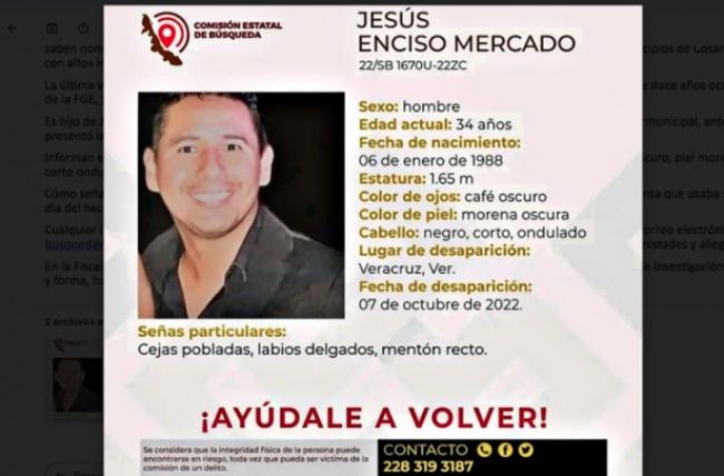 Reportaron la desaparición del ex fiscal Jesús Enciso Mercado de 34 años, desde hace tres días sus familiares y amigos no saben dónde ni cómo está, antes que la Fiscalía General del Estado lo diera de baja en 2019 estuvo en los municipios de Cosamaloapan y Acayucan, zona con altos índices de inseguridad por la presencia de grupos delictivos.