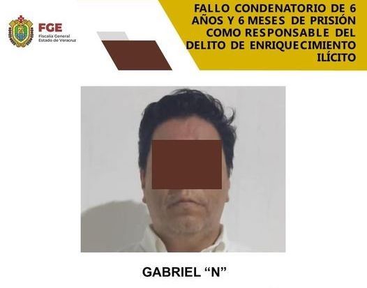 Gabriel “N”, exsecretario de Trabajo del Gobierno de Veracruz, exoficial mayor de la Secretaría de Educación de Veracruz (SEV), exsubsecretario de Finanzas y exsecretario del Trabajo, Previsión Social y Productividad, estará en prisión por 6 años y seis meses por ser responsable del delito de enriquecimiento ilícito en agravio del servicio público, de acuerdo con la FGE.