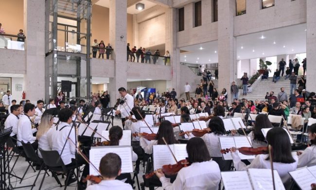 La OSIJ, dirigida por Fernando Azuara Ferreyro e integrada por 52 niñas, niños y adolescentes, interpretó durante una hora diez melodías representativas de México.