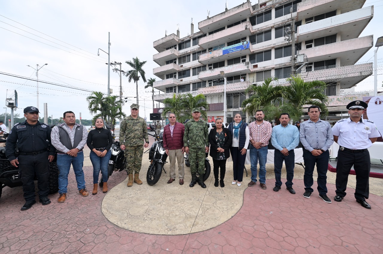 Con una inversión de 8 millones 382 mil 907 pesos, se entregaron 352 uniformes completos, 176 pares de botas, 2 cuatrimotos, 6 motocicletas, y 176 chalecos balísticos nivel 3-A, con dos placas balísticas nivel 4.