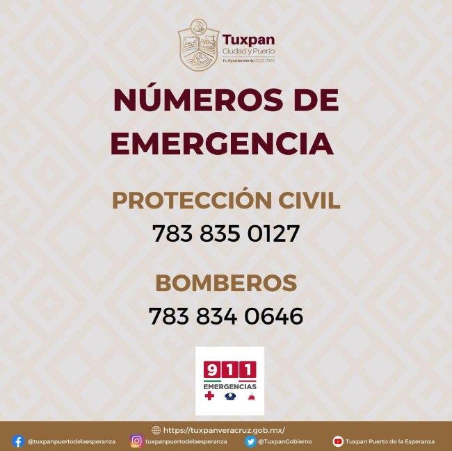 Se pone a disposición de la ciudadanía los números telefónicos de Protección Civil (783 835 0127); Bomberos (783 834 0646) y Emergencias 911.