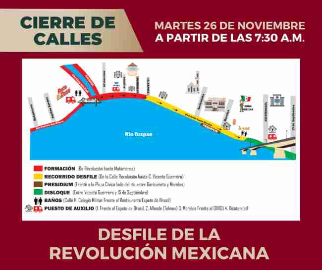 la Dirección de Tránsito Municipal implementará un operativo de cierre de vial en los bulevares Demetrio Ruiz Malerva, Jesús Reyes Heroles e Independencia (de la calle Matamoros a la calle 15 de Septiembre), para realizar el desfile del 114 aniversario de la Revolución Mexicana. La circulación se reabrirá una vez que termine el recorrido.