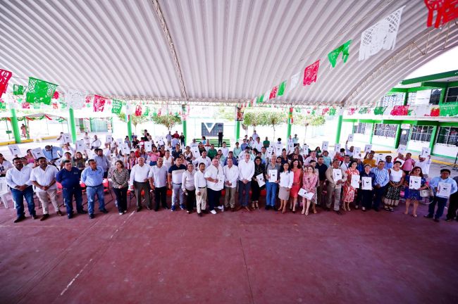 Al dar la bienvenida a las autoridades estatales y regionales, el alcalde José Manuel Pozos Castro señaló que es importante asegurar la titularidad patrimonial de las escuelas, lo que también brindará certeza jurídica a maestros y a comunidades educativas.