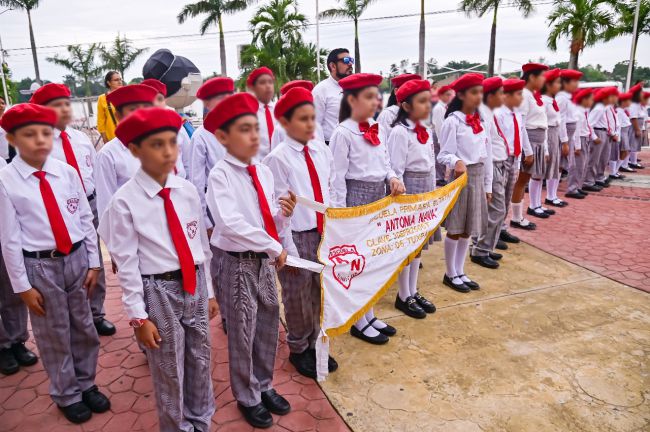 Tuxpan, Ver., 9 de septiembre de 2024.- En el marco de la conmemoración de la Gesta Heroica de los Niños Héroes de Chapultepec, que se celebra el próximo 13 de septiembre, el gobierno de Tuxpan realizó el Lunes Cívico en la explanada municipal, con la participación de alumnas y alumnos de la Escuela Primaria Antonia Nava.
