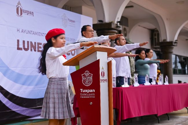 Tuxpan, Ver., 9 de septiembre de 2024.- En el marco de la conmemoración de la Gesta Heroica de los Niños Héroes de Chapultepec, que se celebra el próximo 13 de septiembre, el gobierno de Tuxpan realizó el Lunes Cívico en la explanada municipal, con la participación de alumnas y alumnos de la Escuela Primaria Antonia Nava.
