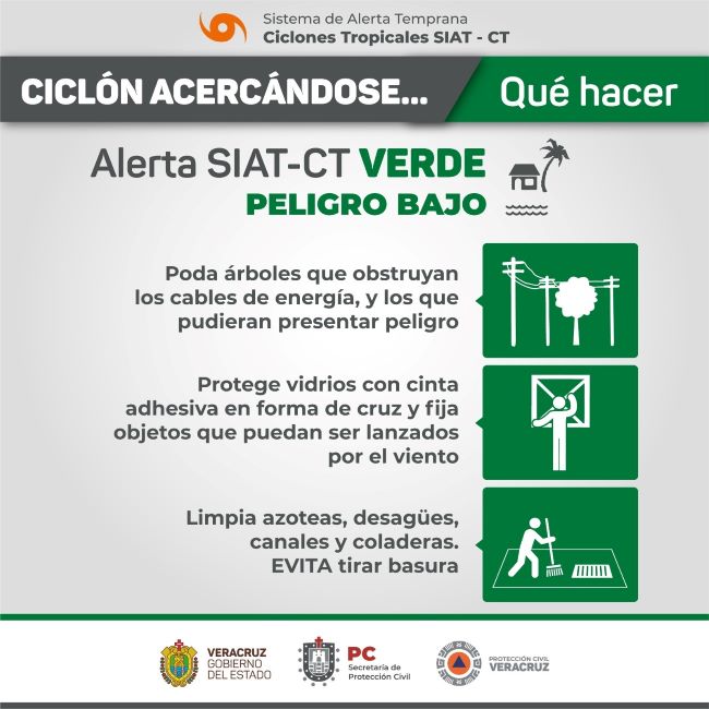 La Coordinación Nacional de Protección Civil ha colocado al norte de Veracruz en Alerta Verde (Peligro Bajo) por Potencial Ciclón Tropical en el Golfo de México.