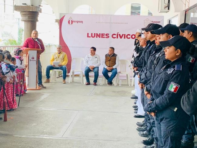 Tuxpan, Ver., 13 noviembre 2023.- En el marco de la conmemoración por el CXIII Aniversario del Inicio de la Revolución Mexicana, que se celebra el próximo 20 de noviembre, el gobierno de Tuxpan llevó a cabo esta mañana el Lunes Cívico en los bajos de presidencia municipal.