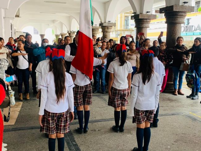Las y los estudiantes Marlene Alexa, Ian Emiliano, Cristina Guadalupe, Alexia Daniela, Frida Esther, José Heriberto, Aitana Guadalupe y Dulce Belén expusieron las efemérides de la semana. Y niñas y niños de primer grado recitaron la poesía coral titulada “Justicia y Libertad”.