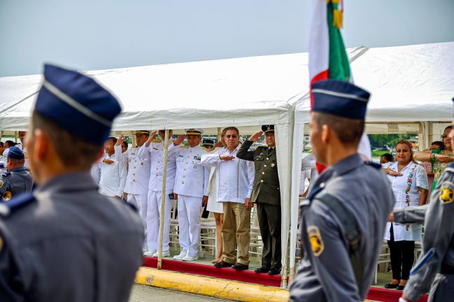 Acompañando al presidente municipal estuvieron la Mtra. Xóchitl Quetzalli Álvarez Vázquez, subsecretaria de Egresos del gobierno del estado, en representación del gobernador Cuitláhuac García Jiménez; el general de brigada DEM Gonzalo Aguilar Escobedo, comandante de la 19ª Zona Militar; el vicealmirante C.G. DEM Miguel Ángel García Portillo, comandante de la 5ª Zona Naval.