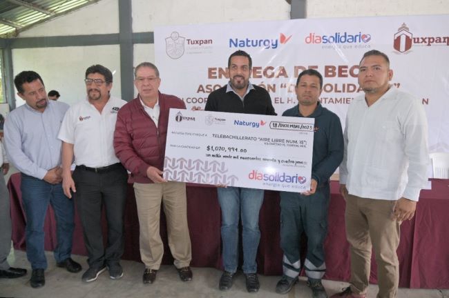 Tuxpan, Ver., 18 diciembre 2023.- Estudiantes de telebachillerato y universidad fueron beneficiados con la entrega de las becas “Día Solidario” y “Con Día Solidario voy a la Universidad”, que realizaron esta mañana la empresa GPG Naturgy, a través de la Asociación Día Solidario, y el H. Ayuntamiento de Tuxpan.