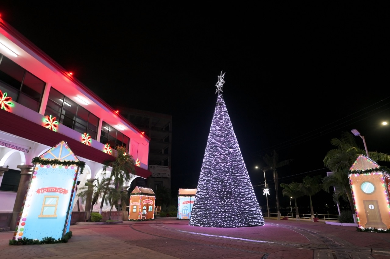 Tuxpan, Ver.- Entre emoción y sonrisas, familias tuxpeñas atestiguaron la noche del lunes el encendido del árbol de Navidad y el nacimiento, instalados en la Plaza Cívica municipal.