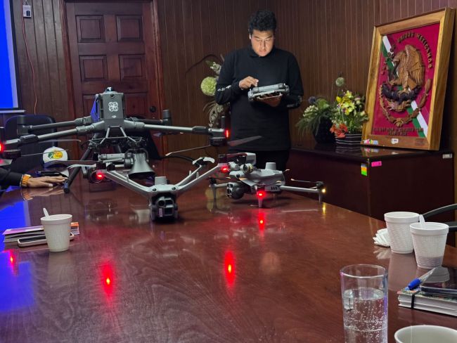 Esto lo informó el alcalde Vinicio Ascencio Fernández, quien dio a conocer la realización de una reunión de trabajo con la Dirección de Seguridad Pública y el área de Tecnologías de la Información, en la que se presenció una demostración de drones de última generación por parte de la empresa Cielito Drone.