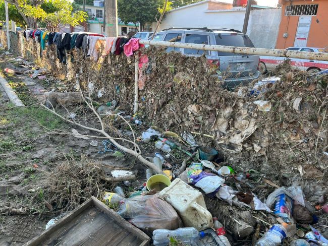 Aquí, donde se graban estos videos y se toman fotos concluye el fraccionamiento Poza de Cuero e inician la colonia Independencia y el fraccionamiento Gaviotas. Conforme se avanza las escenas son peores. Aquí se busca limpiar el drenaje junto a docenas, cientos de casas hechas pedazos, patrimonios desaparecidos, solidaridad civil presente pero insuficiente, ausencia del gobierno de todos los niveles, hasta el domingo a 48 horas de la tragedia inenarrable. Es el poniente de Poza Rica, a unos 500 metros del río cazones que se desbordó a las 4:00-5:30 de la madrugada del viernes diez de octubre y topó con miles de personas durmiendo o intentando salir de última hora. Literalmente el agua poderosa los aplastó, los hizo suyos. Ubican a dos muertos ahogados en Las Gaviotas y a muchos desaparecidos, sabedores del incremento de muertos conforme pasen las horas. Al amanecer del lunes ya hay reportes oficiales de 29 muertos y 18 desapareciones en la entidad veracruzana pero la versión popular considera que la pérdida de vidas es mayor..