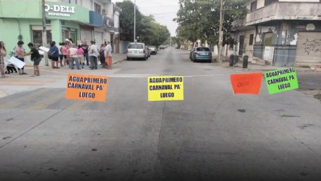 “Agua primero, carnaval pa luego”, decían lonas colocadas en la avenida Américas esquina Américo Vespucio, en el fraccionamiento Reforma, en la ciudad de Veracruz.