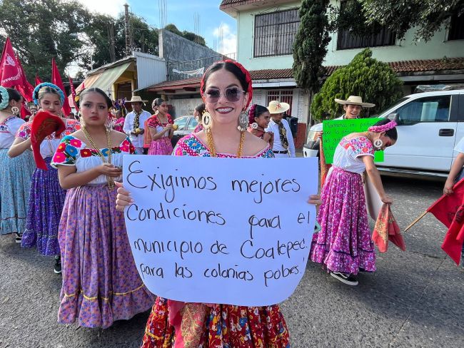 Un nutrido contingente de colonos, jornaleros, estudiantes, artistas y profesionistas habitantes de colonias populares partieron de la glorieta en la entrada de la ciudad con destino a la explanada frente al Palacio Municipal, exigen que el alcalde los atienda y se hagan compromisos concretos para atender sus solicitudes.