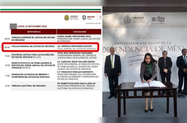 De acuerdo con la agenda de las Guardias de Honor en el monumento a Miguel Hidalgo y Costilla, a Verónica Hernández Giadáns, fiscal espuria de Veracruz, le correspondía la guardia a la 09:30 horas del lunes 12 de septiembre. Antes, a las 09:00 horas la “reina de los sapos”, Isabel Inés Romero, presidenta del Tribunal Superior de Justicia de Veracruz habría de firmar el libro de honor. Pero, ¿qué cree?