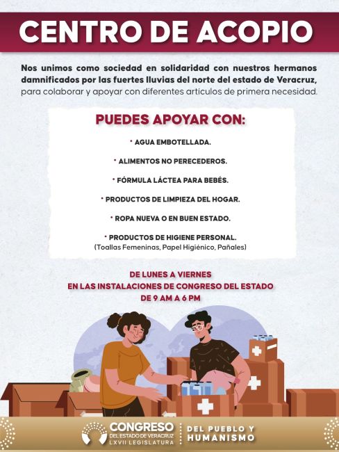 “El gran corazón y la generosidad de los veracruzanos se vuelcan hacia quienes están pasando por situaciones que rebasan sus capacidades y posibilidades y ponen en riesgo su vida y su patrimonio. El Congreso del Estado responde siempre y convoca a la sociedad a sumarse, y es la razón por la que invitamos a quienes deseen unirse a esta iniciativa para apoyar a nuestros hermanos y hermanas que están sufriendo”.