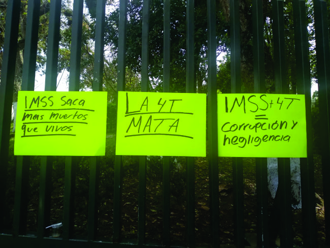 Acusó que hay corrupción y negligencia de directivos y personal administrativo, “está claro que el IMSS atiende de manera pronta a aquellos que son influyentes y recomendados por los directivos y delegados, y a los trabajadores derechohabientes que aportan sus cuotas los dejan morir”.