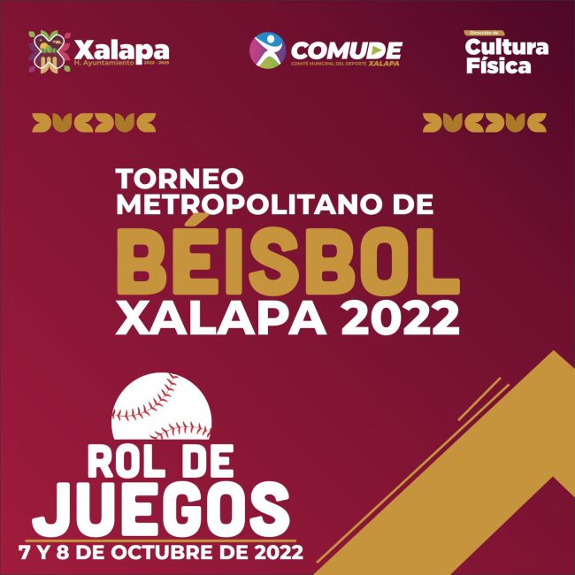 La Asociación Estatal de Béisbol, la Liga de Béisbol Infantil y Juvenil Xalapeña y el H. Ayuntamiento de Xalapa, a través de la Dirección de Cultura Física y el COMUDE, te invitan a ver los juegos del Torneo Metropolitano de Béisbol Xalapa 2022 ⚾ en categoría varonil juvenil de 17 a 22 años, donde se tiene la participación de 7 equipos.