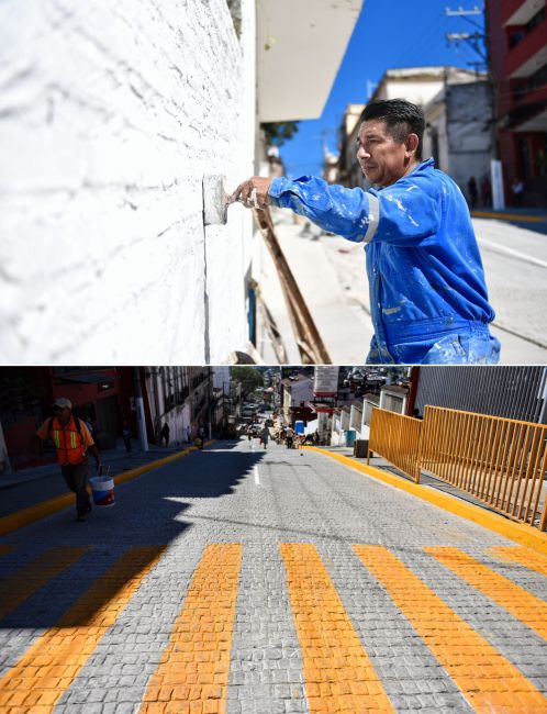 Se realizaron labores de limpieza, señalética y aplicación de pintura en guarniciones de la calle Francisco Javier Clavijero, previo a la reapertura al tránsito, programada para el lunes.