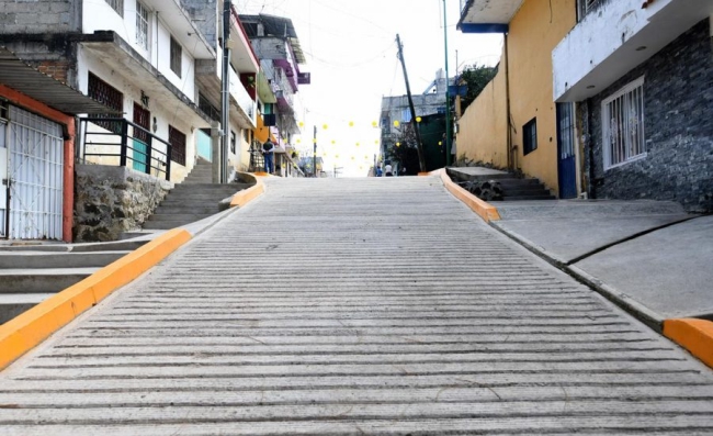 Se trata de una obra de más de 718 metros cuadrados de concreto hidráulico que incluye alumbrado público, escalinatas, guarniciones, banquetas, barandal y muros, todo ello en beneficio de más de 500 habitantes.